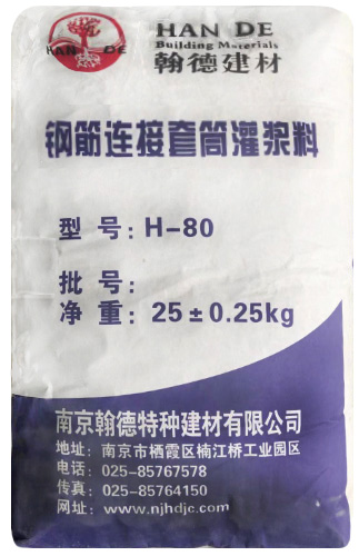 南京翰德特種建材有限公司是一家集開發(fā)、生產(chǎn)、銷售、管理于一體的現(xiàn)代化企業(yè)。我公司專業(yè)生產(chǎn)高強無收縮灌漿料,現(xiàn)擁有客運專線專用型、H-40、H-60、CGM、特種灌漿料等五大系列。 我公司成立以來,通過技術創(chuàng)新、完善企業(yè)經(jīng)營管理,客戶已遍及江蘇、山東、河南、浙江、福建等省市,目前公司產(chǎn)品年生產(chǎn)能力30000。已有多項規(guī)格品種產(chǎn)品分別獲國家專利、省市名牌,并被列為國家星火計劃、國家火炬計劃,產(chǎn)品產(chǎn)銷量居全國同行業(yè)前列,已形成以南京、阜陽兩大生產(chǎn)基地為主體,以南京翰德特種建材有限公司為前沿,兩地互為依托、同步推進的產(chǎn)業(yè)發(fā)展格局。
